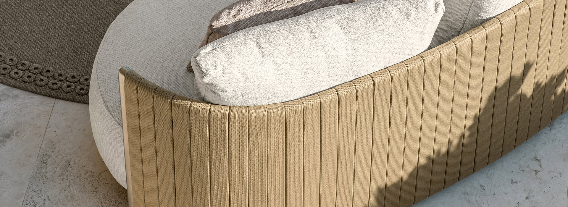 Double tresse composée d’une âme en caoutchouc et d’un revêtement en oléfine multifilament, résistante aux rayons UV.
