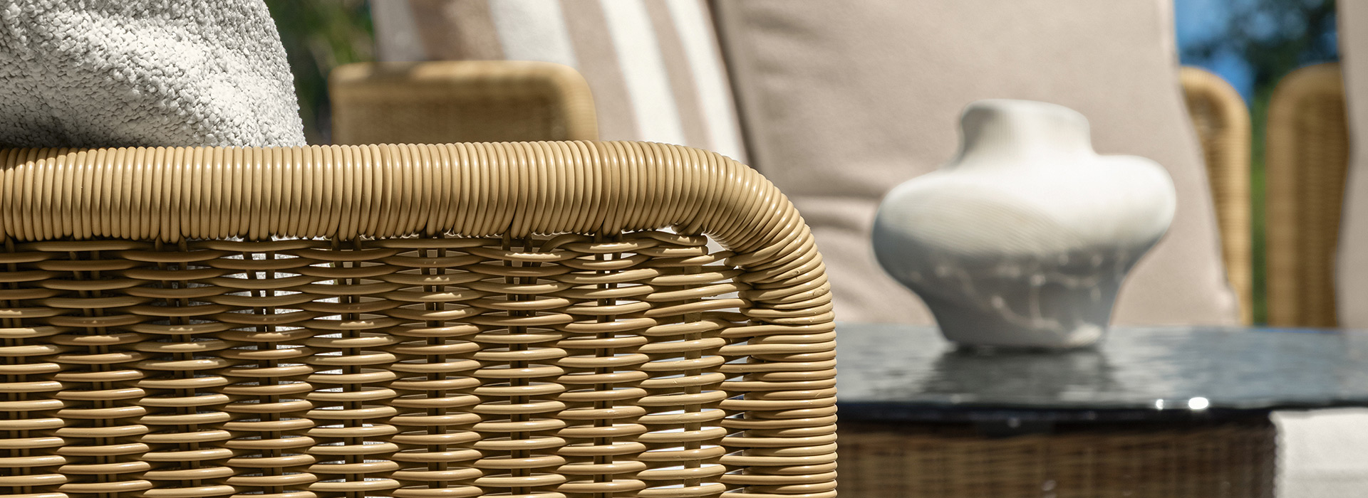 La fibre wicker est un matériau synthétique qui reproduit l’aspect du rotin fin, avec l’avantage supplémentaire d’être totalement résistante aux agents atmosphériques et au passage du temps. L’une des caractéristiques distinctives de la fibre wicker est son tressage, réalisé méticuleusement à la main.