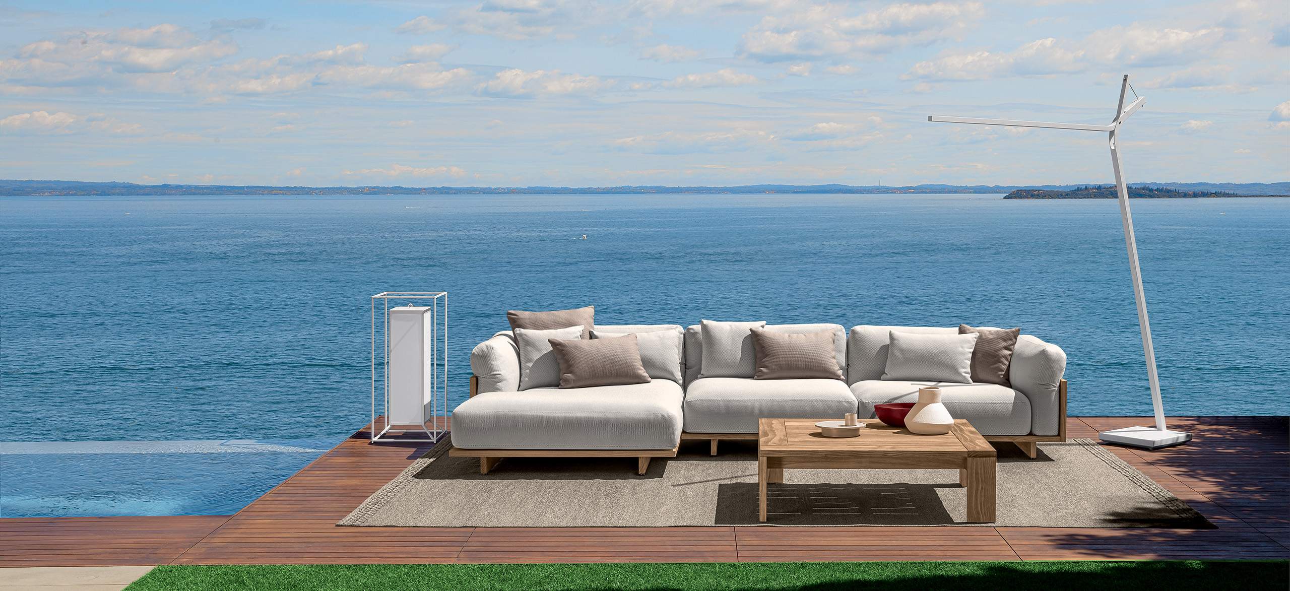 Cette collection basée sur le thème de la boîte en bois se présente avec un langage rigoureux, épuré et géométrique, et caractérisée par de grandes bandes latérales qui contiennent la coussinerie et donnent une assise profonde et accueillante. Nous avons voulu y unir des pieds en patins, créant ainsi une sorte de “flottement” du rembourrage et des proportions. La collection s’enrichit d’un rembourrage à la forme sculpturale, caractérisé par un volume tressé enveloppant. Généreux les sièges rembourrés, avec ce pied en bois, si particulier, qui dialogue parfaitement avec les autres éléments de la collection.