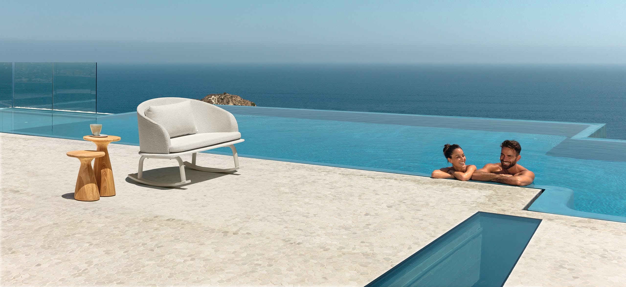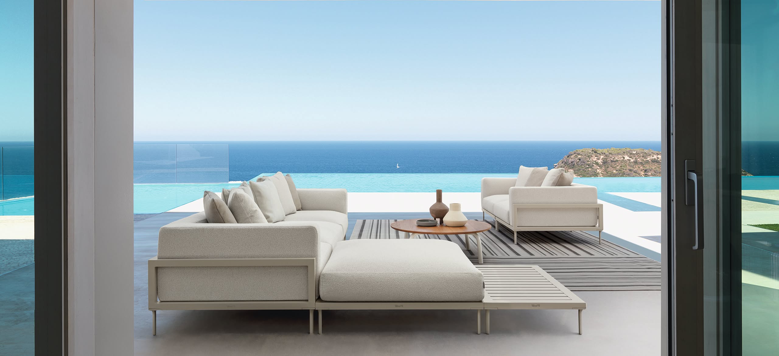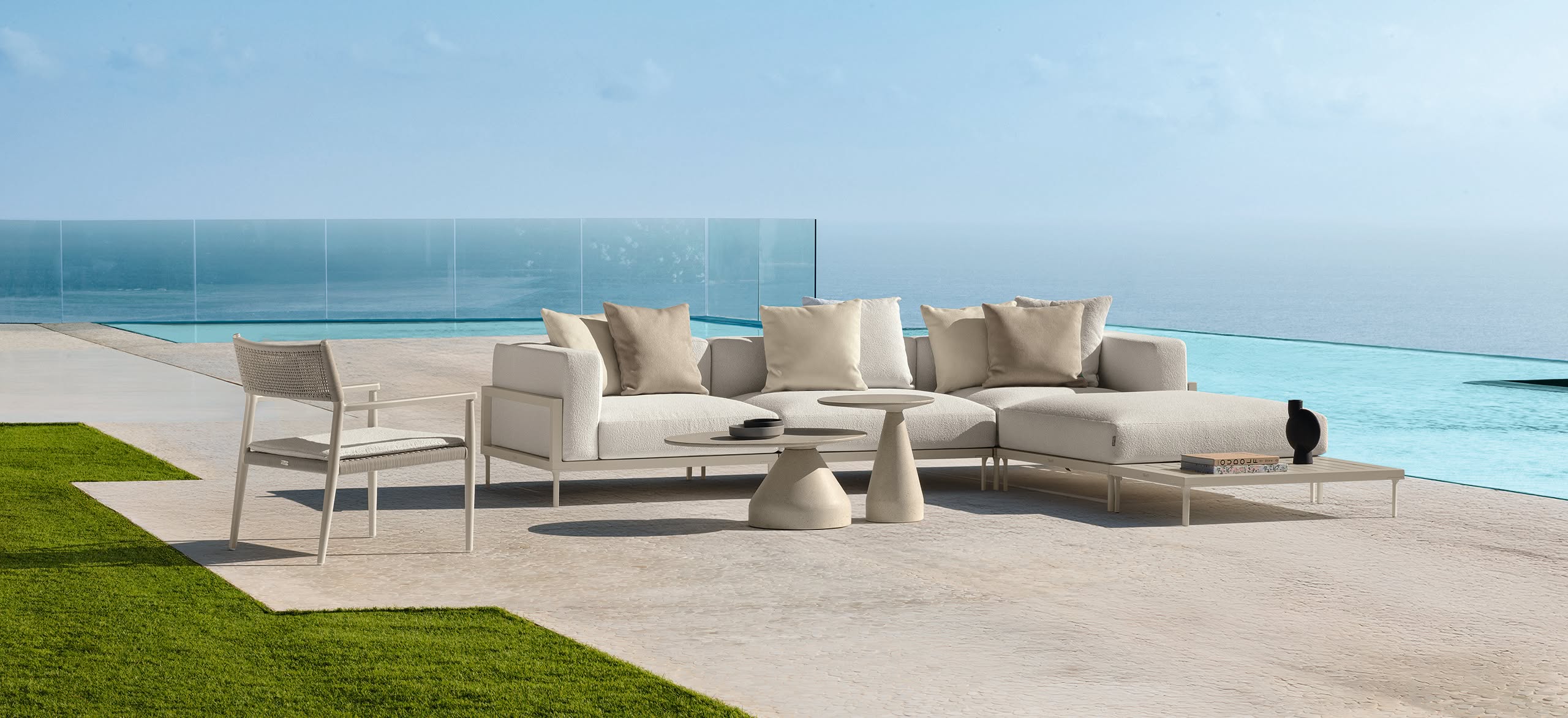Le fil conducteur de la collection Cleo Alu est la création d’un produit jeune, dynamique, capace de susciter l’émotion chez la personne qui l’observe. La perception visuelle interagit directement avec tous les sens. Une collection née du désir d’expérimenter un jeu de contrastes et de combinaisons matériques inédites: la légèreté de l’aluminium, la modernité des surfaces vitter, la surprenante élégance des revêtements textiles et un nouveau coussin moelleux d’un grand accueil et confort se combinent pour créer une ligne qui s’adapte parfaitement à tout style ou espace extérieur