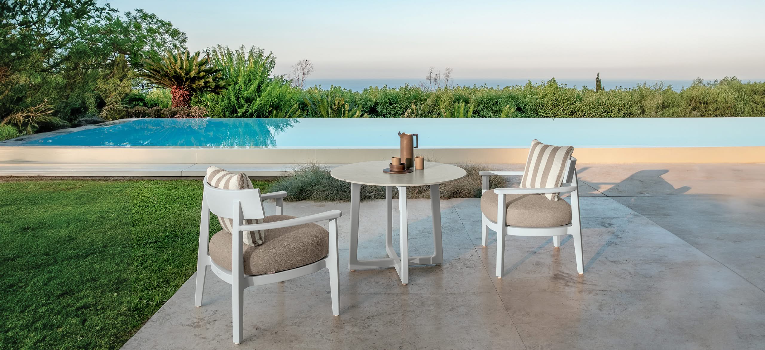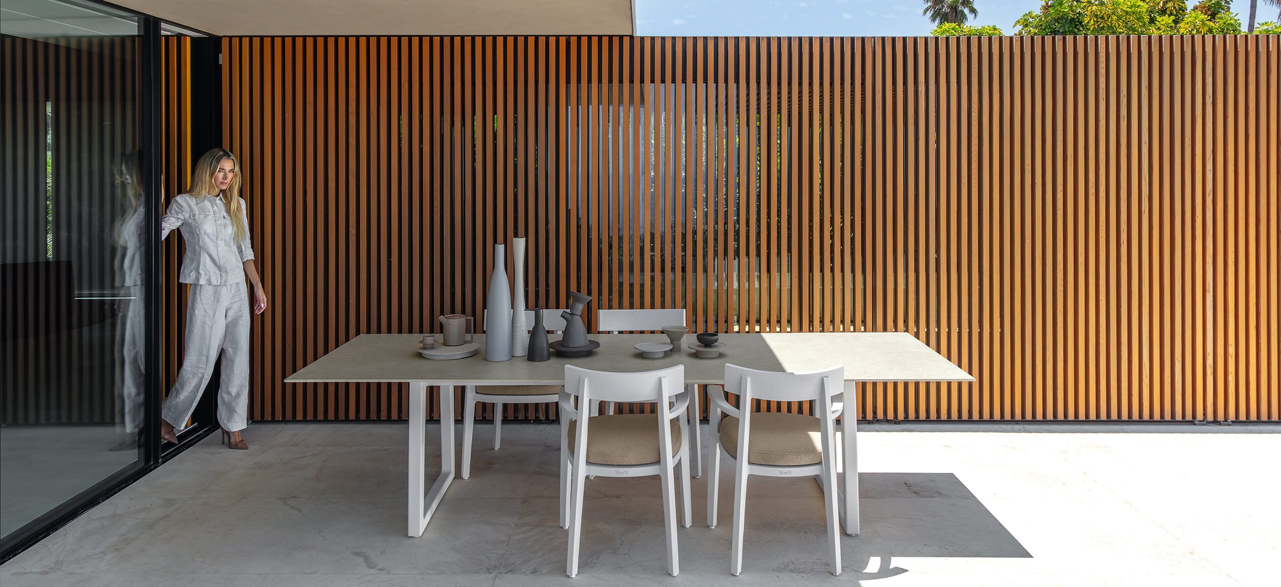 Comme le suggère son nom, Ever est la collection créée par Christophe Pillet, maître d’une élégance intemporelle, pensée pour résister à la course effrénée des tendances et s’adapter à différents environnements et époques tout en restant fidèle à elle-même. Les lignes essentielles et la légèreté de l’aluminium composent des éléments d’ameublement “evergreen” qui regardent vers l’avenir de la vie en plein air tout en s’inspirant des grands classiques du passé. Des compositions fines et donc polyvalentes, tant dans les formes que dans les couleurs, orientées vers des nuances neutres inspirées de la nature, symbole même de cyclicité et de durabilité.