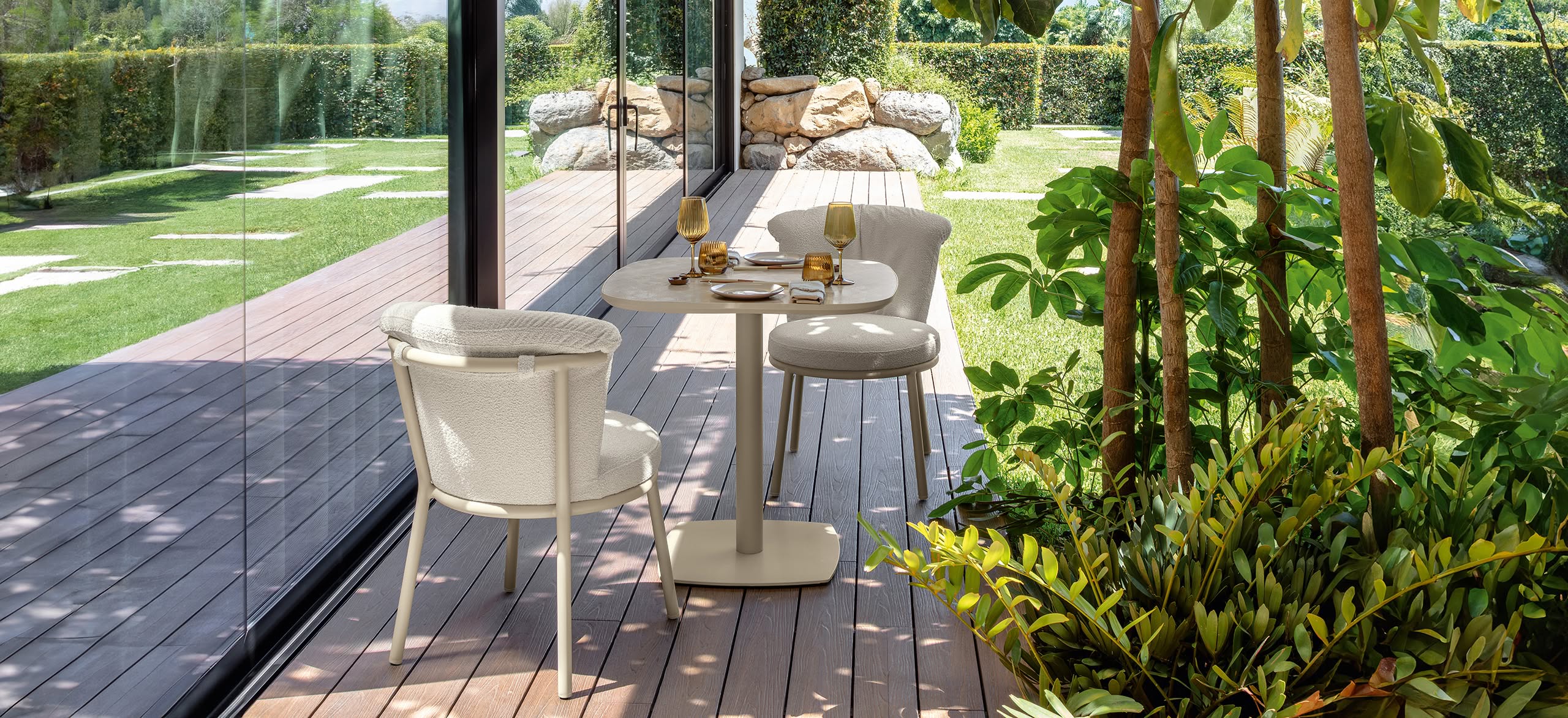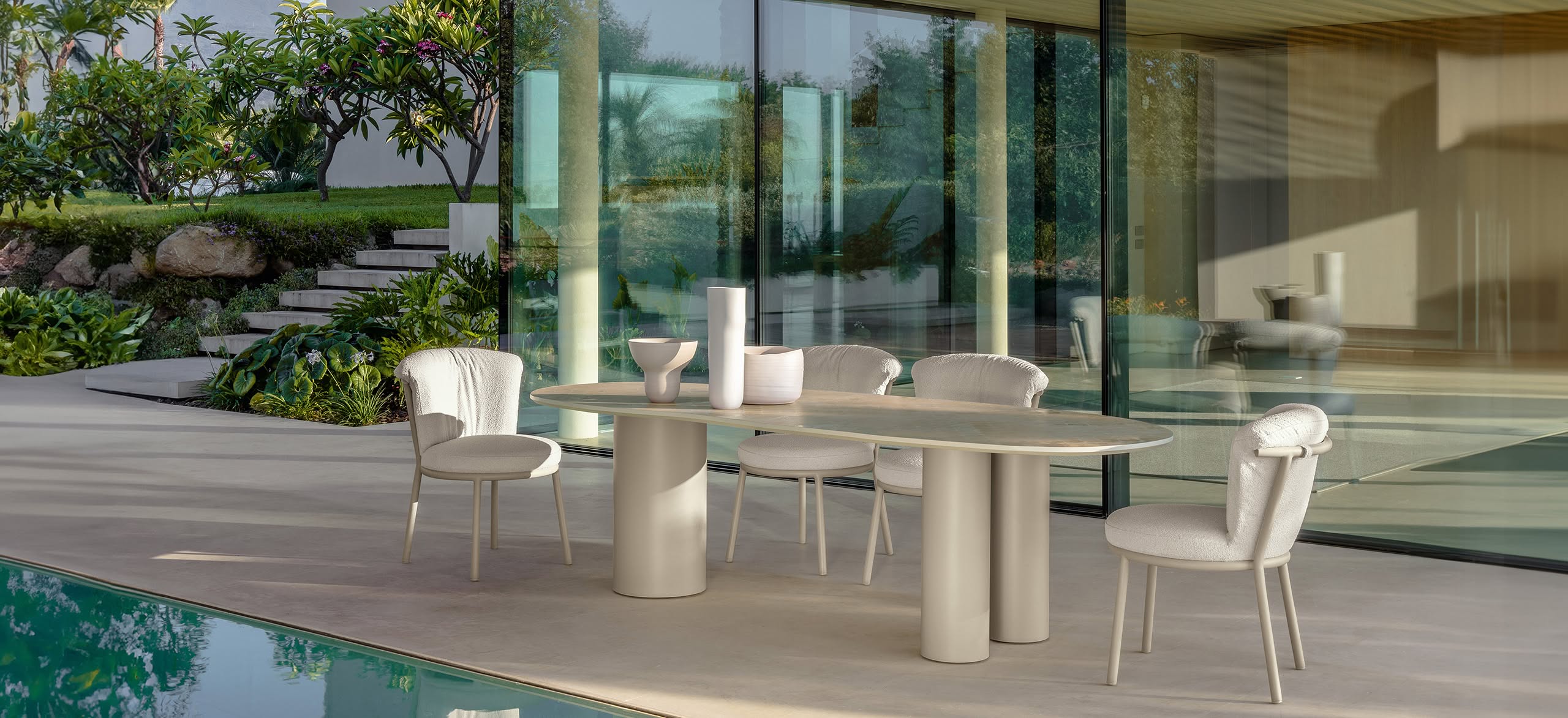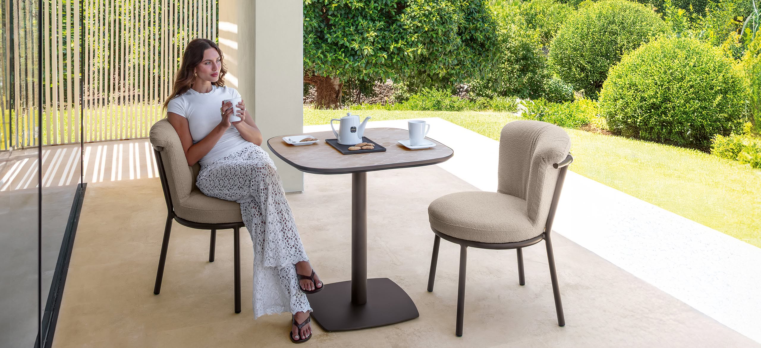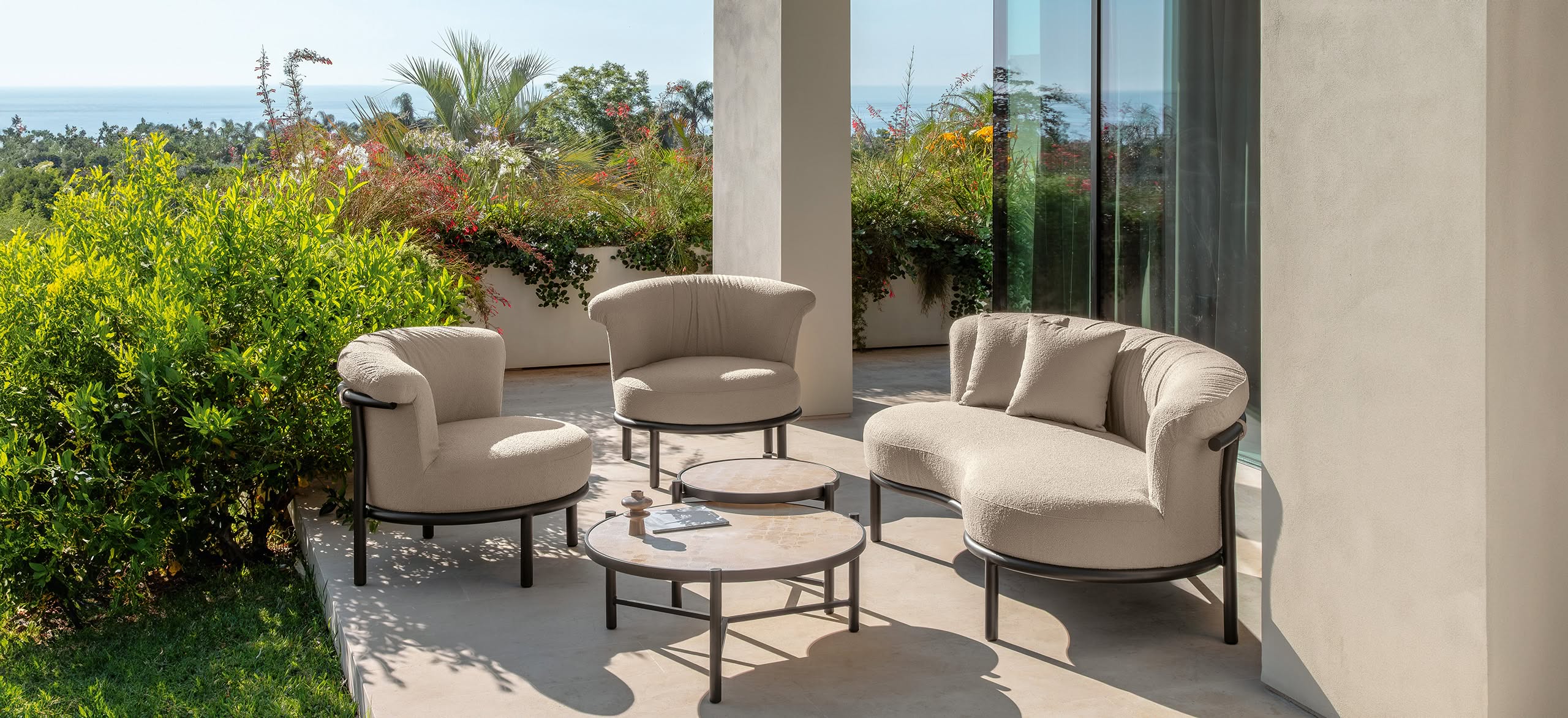 James est une collection d’extérieur qui allie la légèreté du tube d’aluminium rond à un design aux lignes douces et accueillantes. Les assises, généreuses et enveloppantes, sont agrémentées de coussins aux profils arrondis, renforçant la sensation de confort visuel et tactile.