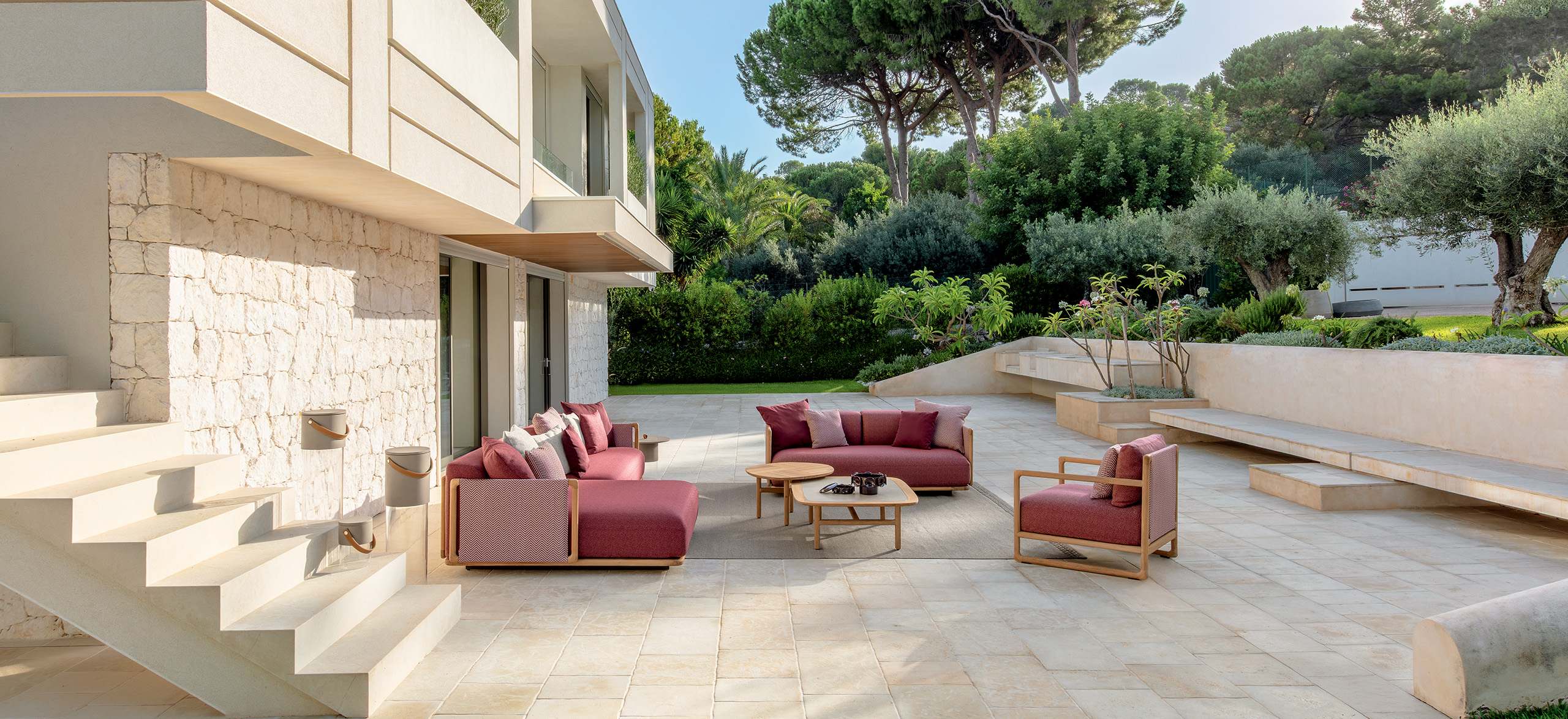 De l’esprit éclectique de Marco Acerbis est née Jun, une collection qui mélange l’élégance du teck et les assises généreuses mais compactes, dans un style tout à fait oriental. Les profils en bois et les assises en bois communiquent grâce au revêtement en tissu bouclé ton sur ton des dossiers et des accoudoirs, facilement déhoussables. Les tables en bois avec des formes irrégulières sont complétées par des plateaux en grès vitrifié, offrant un équilibre parfait entre le confort et le style, faisant de chaque espace extérieur une oasis de luxe contemporain.