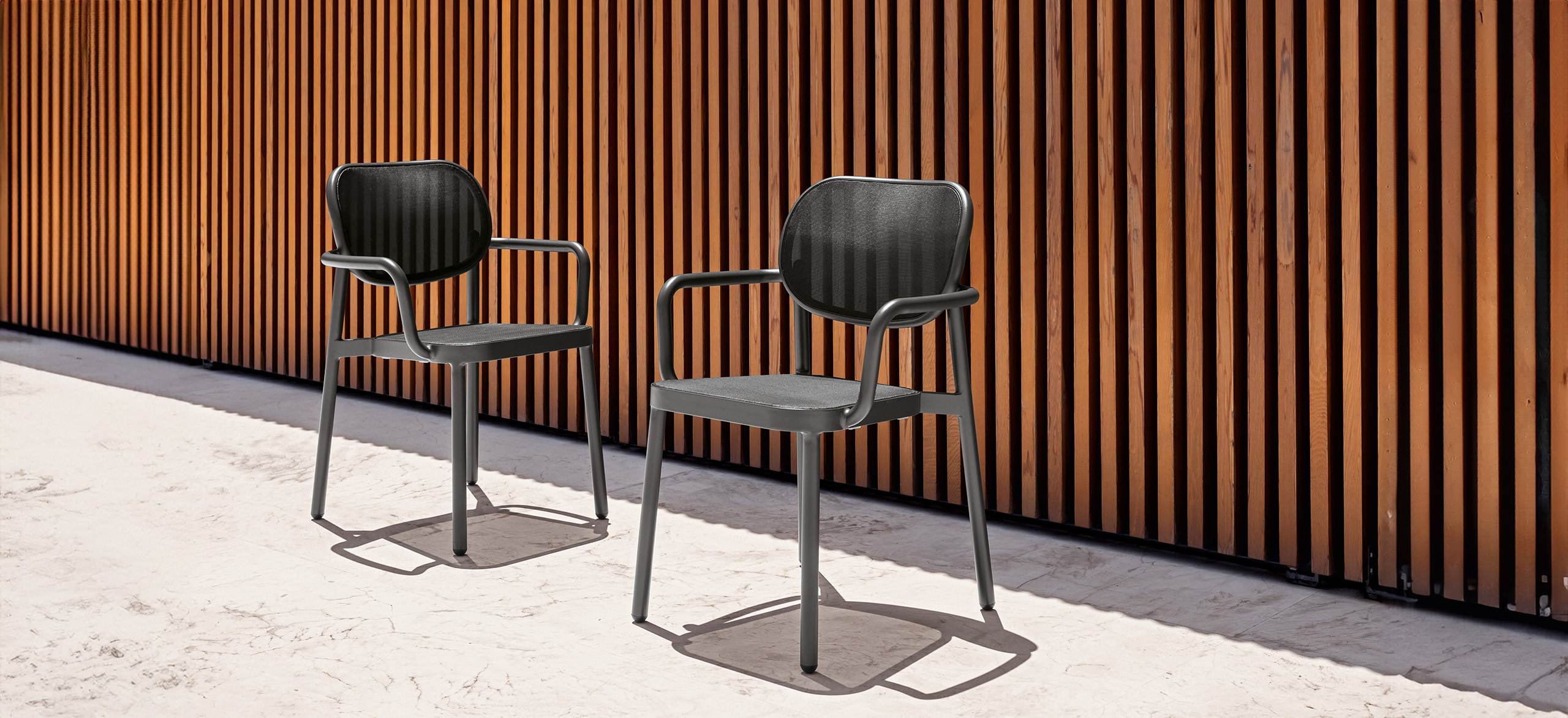 La structure en aluminium peint, légère mais résistante, dialogue harmonieusement avec l’assise et le dossier en textilène. Chaque détail est pensé pour offrir une expérience d’usage intuitive et agréable, où l’esthétique et la fonctionnalité coexistent en parfaite harmonie.