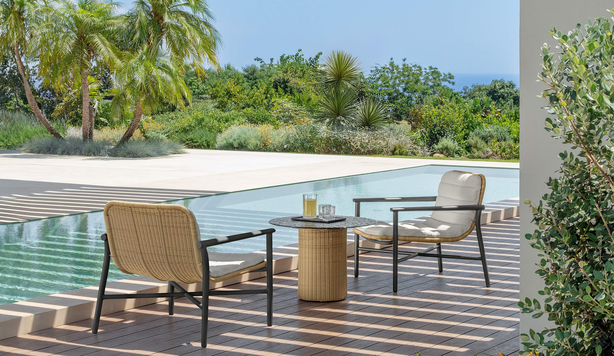 Le fauteuil lounge Bond réinterprète le plaisir du temps libre avec un design qui marie confort et style. Les proportions équilibrées, l’assise large et les coussins déco transmettent immédiatement une sensation d’accueil. La structure en aluminium recouverte de rotin tressé allège l’impact visuel et assure une durabilité dans le temps, tandis que les formes douces et enveloppantes créent un jeu harmonieux de volumes et d’ombres. Parfait pour des moments de détente, il apporte caractère et continuité esthétique à tout espace extérieur.
