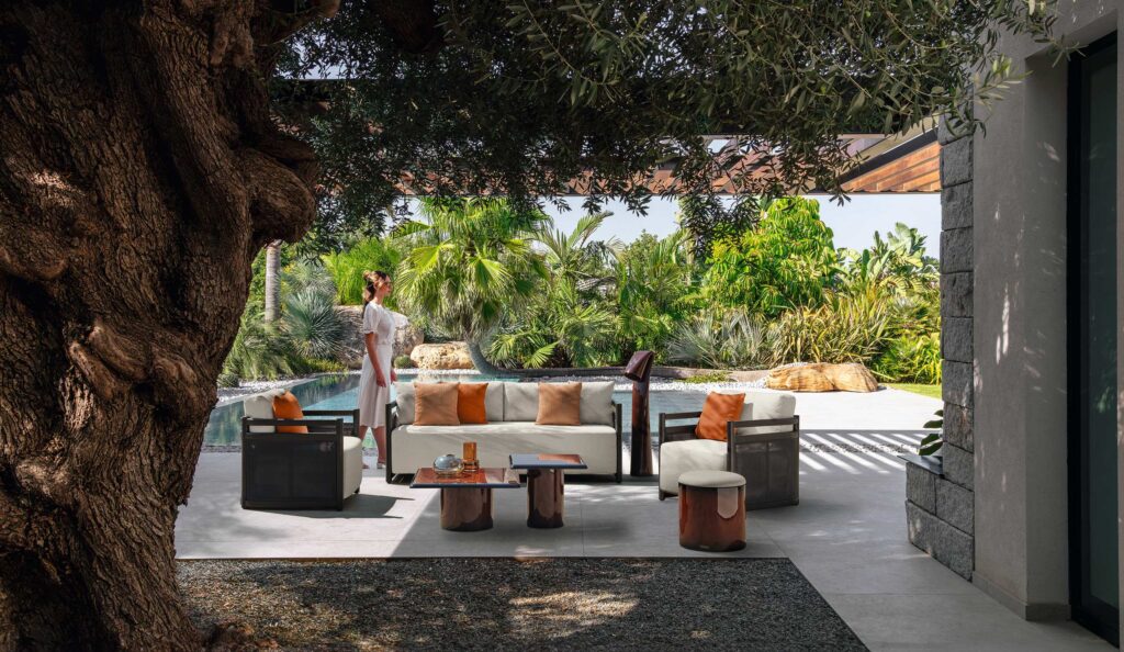Le fauteuil living Edwin Alu reprend le concept du canapé mais en réduit les dimensions, devenant un meuble autonome capable de caractériser son extérieur. En aluminium moka ou blanc chaud, avec une structure enrichie d’une fibre ultra slim, dans les mêmes tons, extrêmement résistant aux agents atmosphériques, il s’adapte à des environnements plus traditionnels comme à ceux plus modernes et avant-gardistes. Le tissu bouclé en blanc crème, fait du fauteuil un meuble polyvalent mais d’une grande élégance.