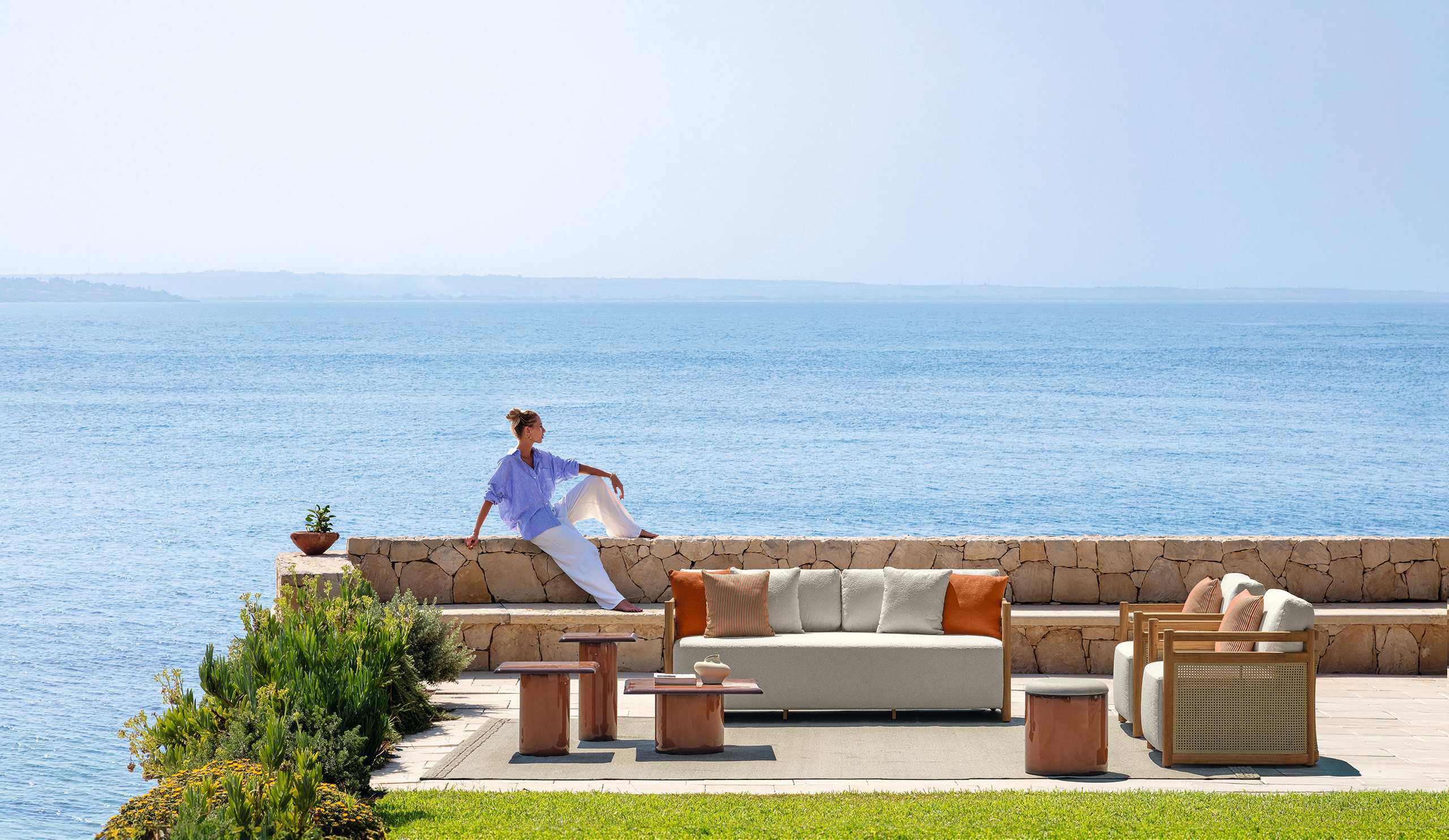 Le canapé Edwin est un module compact et accueillant avec une structure en teck ornée d’un tressage Vienna Straw. Des coussins larges et réguliers, en tissu bouclé aux tons crème, combinés à l’élégante structure en teck aux chaudes nuances de miel, le rendent parfait pour une utilisation dans des environnements neutres ou très caractérisés et facilement contextualisable par ses dimensions et ses essencesali.