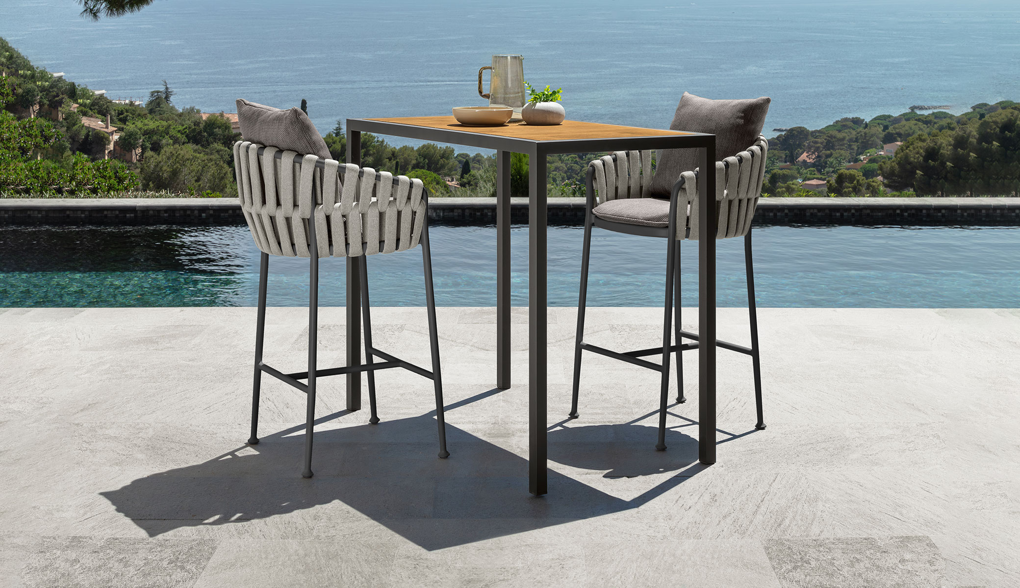 Le tabouret Frame est un élément pratique et confortable qui peut être utilisé aussi bien dans le domaine résidentiel que pour des projets destinés à la restauration. La structure en aluminium, mince et harmonieuse, dialogue avec les volumes souples du coussin et avec l’entrelacs de cordes rembourrées qui entoure le dossier. Sensuelle et élégante, c’est l’élément parfait pour mettre en valeur avec style tout salon d’extérieur.