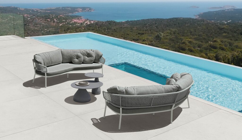 C’est en observant la lune que son designer a eu l’idée du canapé incurvé d’extérieur Moon. Son dossier rappelle en effet la forme d’une demi-lune. Légèreté dans le tressage des cordes et résistance due à l’utilisation du teck: telles sont les caractéristiques de ce canapé dessiné par Cristian Visentin. La structure est en aluminium revêtu d’un tressage de cordes en tissu synthétique gris. La coussinerie est en tissu déhoussable, facile à laver et résistante aux agents atmosphériques. Le rembourrage est en mousse quick dry foam.